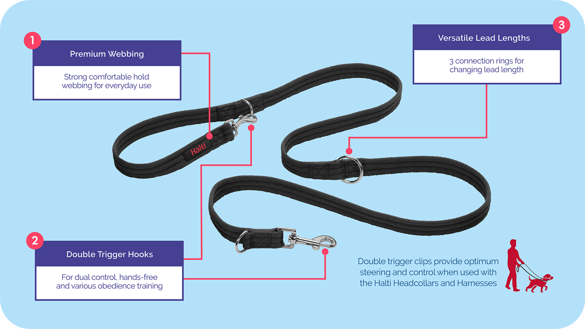 The HALTI Dog Lead is made from high-grade nylon with 3M reflective weave; it provides security and safe visibility even in low-light conditions. The handle is lined with super-soft neoprene ensuring comfort for the handler in any eventuality.